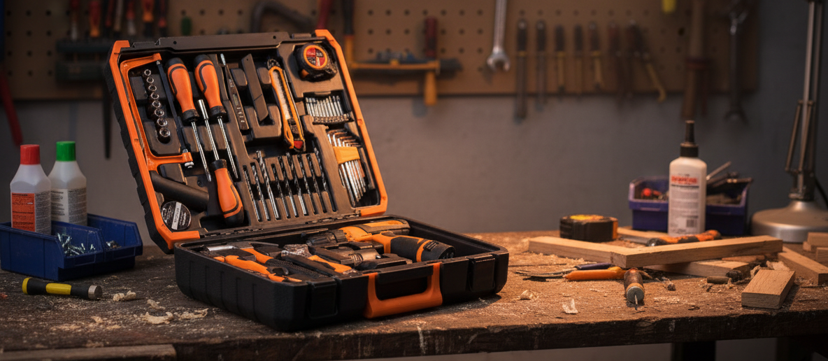 Praktický kufr pro snadné přenášení a skladování celého nářadí.