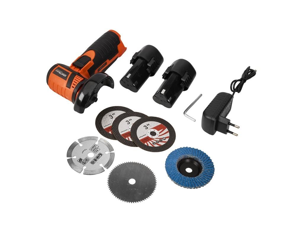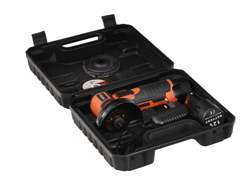 Akumulátorová mini úhlová bruska je kompaktní a přenosný bezkartáčový nástroj, navržený pro práci v těžko dostupných místech a mimo dosah elektrické sítě. Díky malým rozměrům, nízké hmotnosti a napájení dvěma 12V bateriemi je ideální pro jemné řezání, broušení a leštění jak v profesionální dílně, tak v domácí garáži.