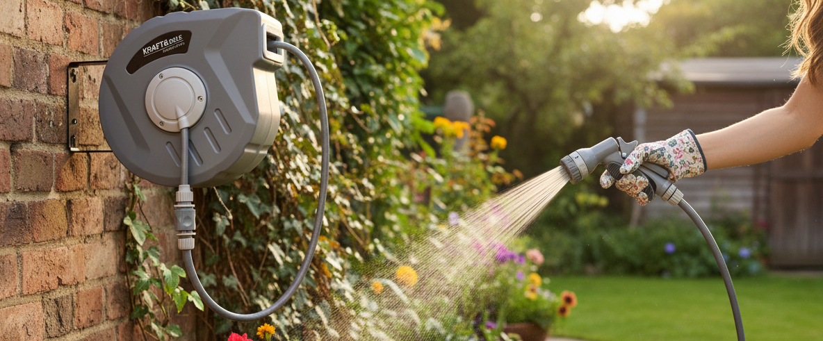 Automatický naviják zahradní hadice KD2081 KRAFT&DELE je praktickým spolehlivým řešením pro údržbu zahrady. Díky automatickému navíjecímu mechanismu, odolnému materiálu a možnosti montáže na stěnu nabízí snadné a pohodlné používání pro každodenní práci na zahradě.