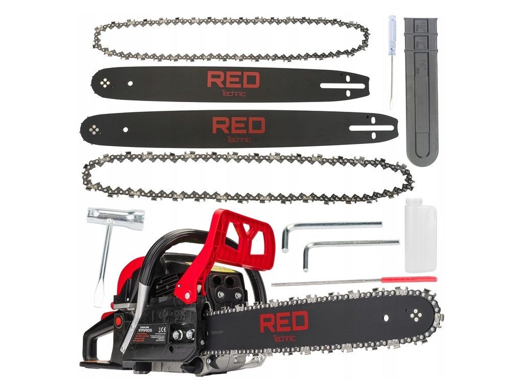 Benzínová pila + 2 vodící lišty 16" a 18" + řetězy RTPSP0035 RED TECHNIC
