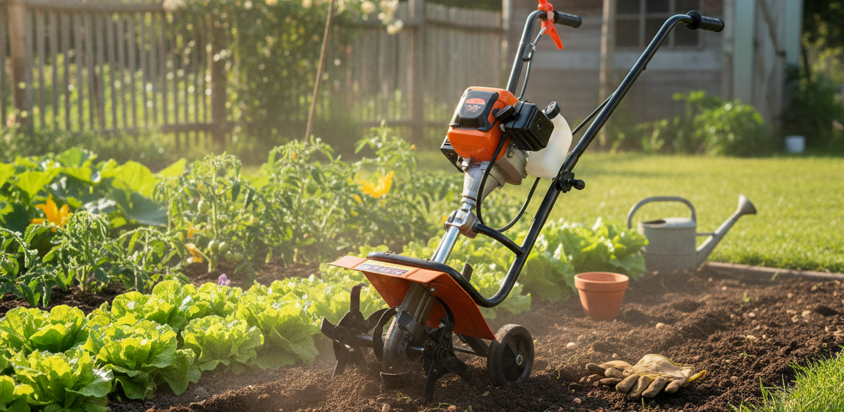 - Pracovní šířka 360 mm a hloubka až 150 mm – efektivní kypření půdy