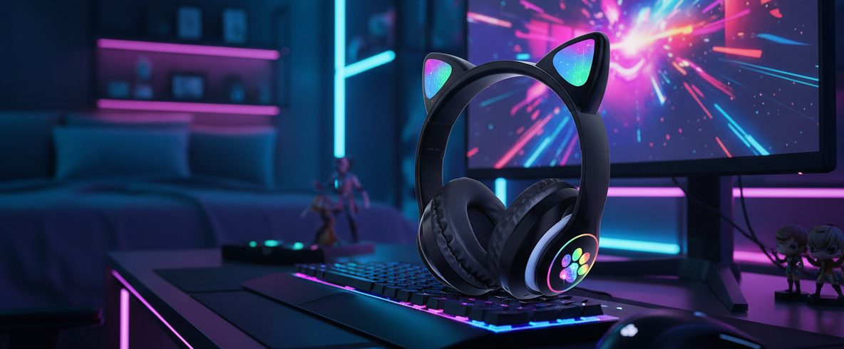 Stylová, víceúčelová sluchátka s výrazným designem kočičích uší a skvělým zvukem – dokonalý společník na každý den i jako originální dárek.
