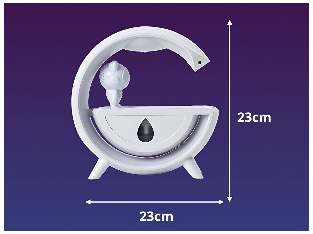 Bluetooth reproduktor se zvlhčovačem vzduchu je dokonalým spojením technologie, estetiky a funkčnosti. Vytvoří ve vašem domově relaxační prostředí, zlepší kvalitu vzduchu a díky elegantnímu LED osvětlení s motivem astronauta vnese do interiéru moderní a útulný nádech.