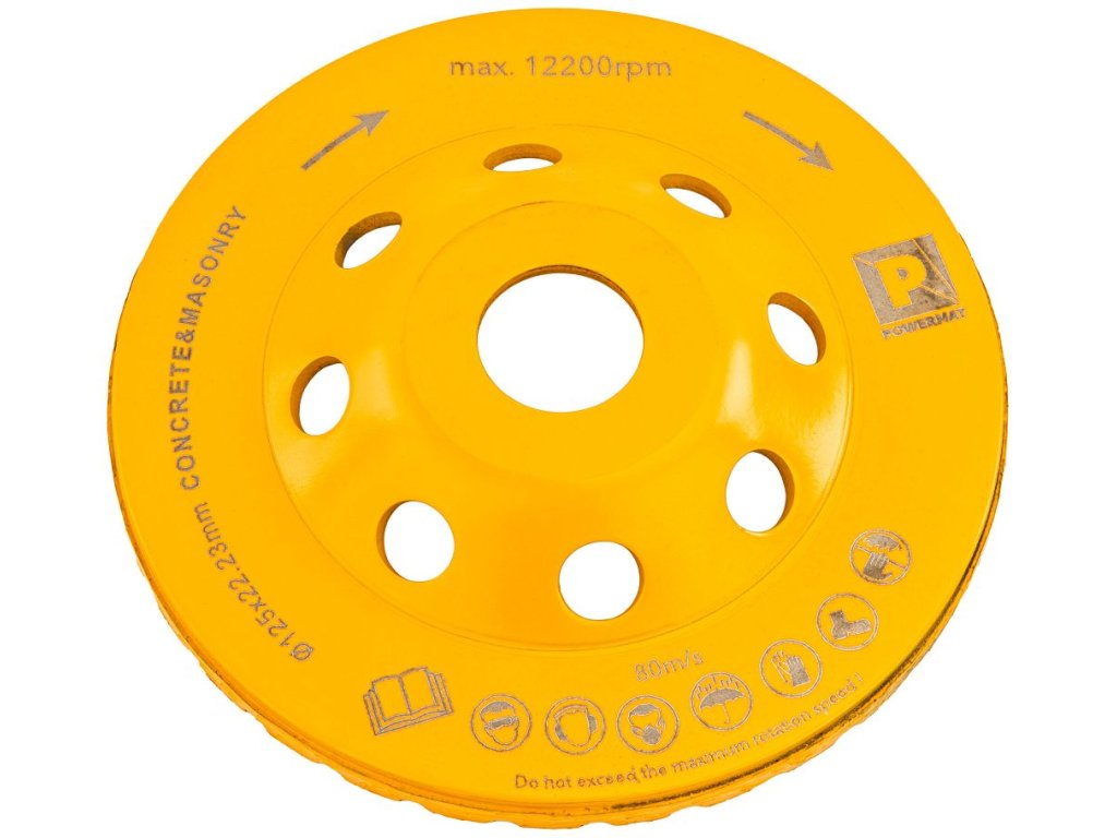 Diamantový hrncový brusný kotouč POWERMAT PM-DTG-1252T je navržen pro rychlé a efektivní broušení, srovnávání a přípravu povrchů z betonu a dalších tvrdých stavebních materiálů. Miskovitá konstrukce zajišťuje vysoký úběr materiálu, stabilní chod a snížené vibrace. Diamantové segmenty o výšce 6 mm poskytují dlouhou životnost a spolehlivý výkon i při intenzivním nasazení. Standardní průměr 125 mm garantuje širokou kompatibilitu s běžnými úhlovými bruskami.