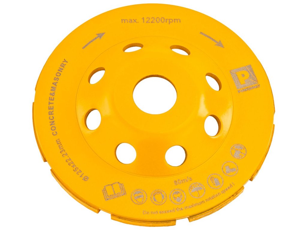 Diamantový hrncový brusný kotouč je určen pro účinné broušení, srovnávání a přípravu povrchů z betonu a dalších tvrdých stavebních materiálů. Díky miskovité konstrukci a diamantovým segmentům o výšce 5 mm poskytuje stabilní výkon, plynulý chod a dlouhou životnost i při intenzivním nasazení. Standardní průměr 125 mm zajišťuje širokou kompatibilitu s běžnými úhlovými bruskami a umožňuje pohodlnou práci na velkých i hůře dostupných plochách.