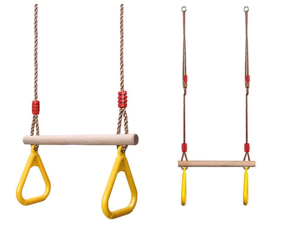 Pevná rovná hrazda z přírodního tvrdého dřeva, s nastavitelnou délkou polypropylenových lan (max. 2,5m). Rozměry: Ø 35 x 580 mm.