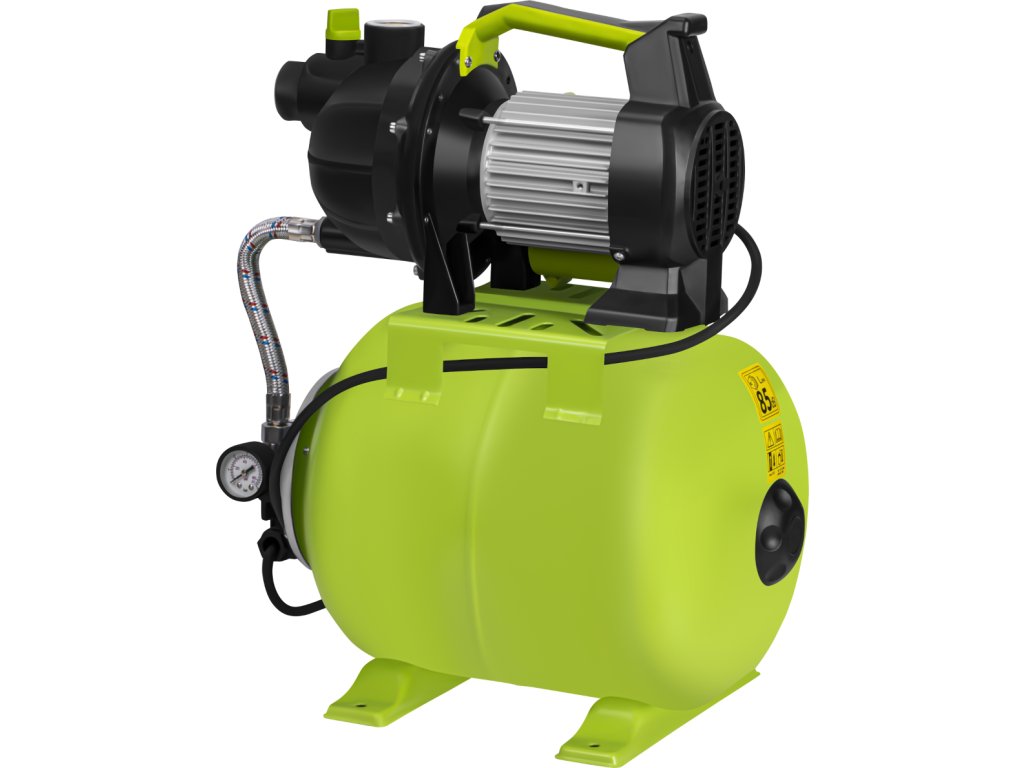Domácí vodárna je výkonné hydroforové čerpadlo s příkonem 1200 W a integrovanou 20litrovou tlakovou nádrží, které zajišťuje stabilní tlak vody v systému. Je ideální pro zavlažování zahrad, parků, zeleninových záhonů a trávníků, stejně jako pro zásobování domácnosti užitkovou vodou. Díky průtoku až 3400 l/h umožňuje efektivní čerpání vody ze studní, nádrží na dešťovou vodu, sudů, rybníků nebo potoků (doporučeno použití předfiltru). Vestavěný manometr umožňuje nepřetržité sledování tlaku a přispívá k bezpečnému a stabilnímu provozu. Použití hydroforu snižuje četnost spínání motoru, čímž prodlužuje jeho životnost a zvyšuje komfort při používání vody.