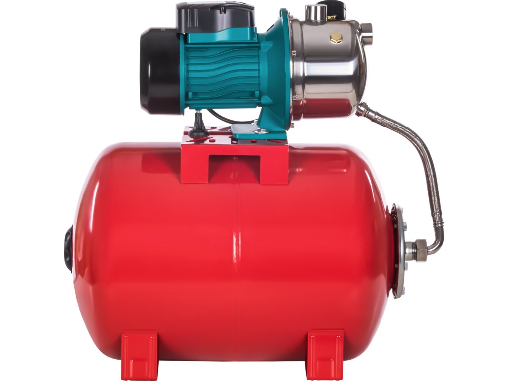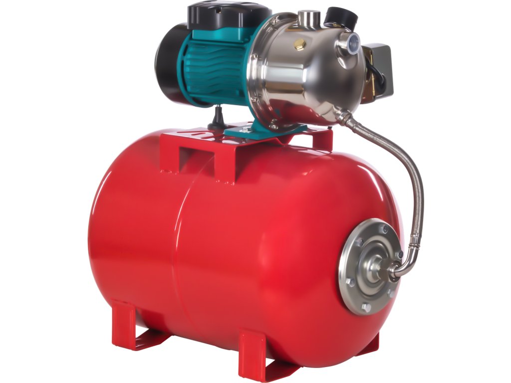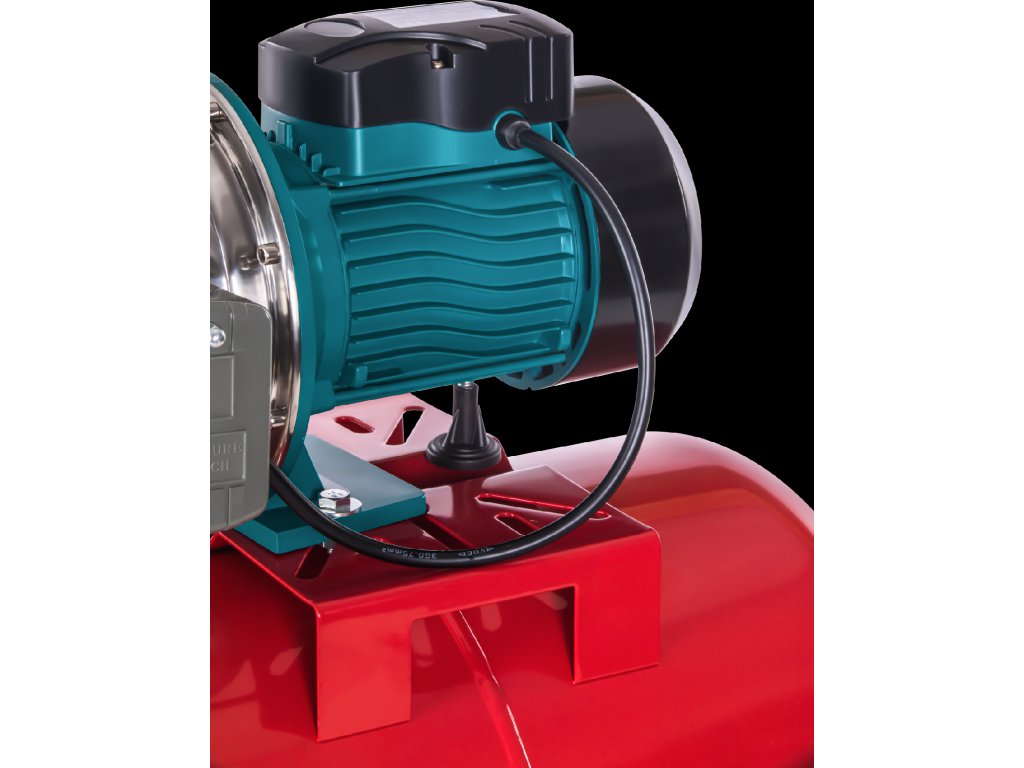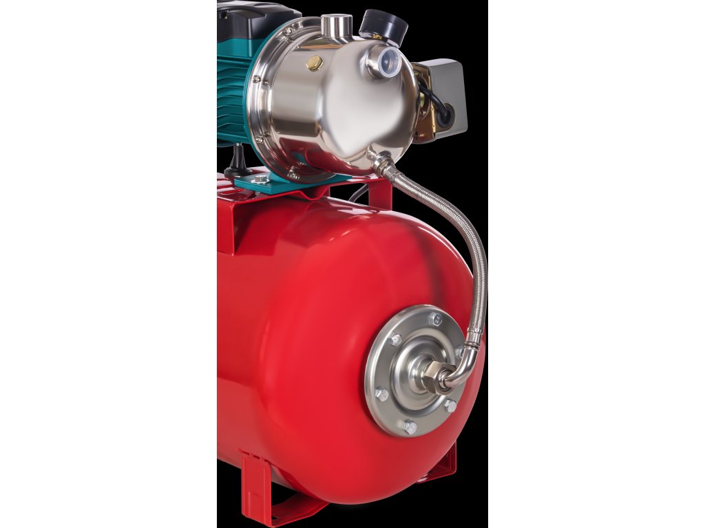 Tlaková nádrž o objemu 50 litrů stabilizuje tlak v systému, snižuje počet sepnutí čerpadla a zajišťuje rovnoměrný přísun vody.