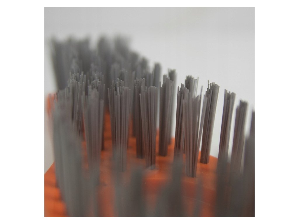 - Vysoce kvalitní nylon: Materiál kartáče je dostatečně pevný pro efektivní odstranění nečistot, přitom je šetrný k povrchu a zabraňuje vzniku oděrek či promáčklin.