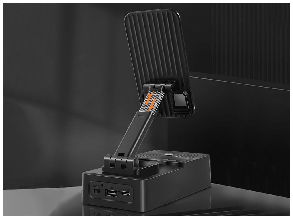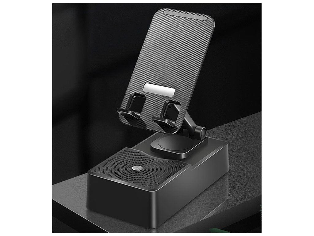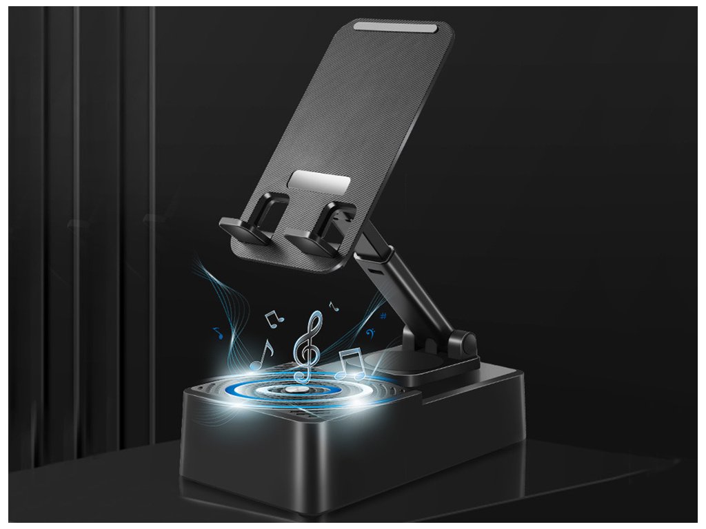 Držák na telefon s integrovaným Bluetooth reproduktorem je praktické multifunkční zařízení, které spojuje stabilní stojan na telefon a bezdrátový reproduktor s výkonem 5 W. Umožňuje pohodlné sledování videí, videohovory či používání aplikací a zároveň poskytuje čistý a silný zvuk. Díky 360° nastavení snadno upravíte úhel telefonu dle potřeby a díky dobíjecí baterii můžete zařízení používat doma, v kanceláři i venku.