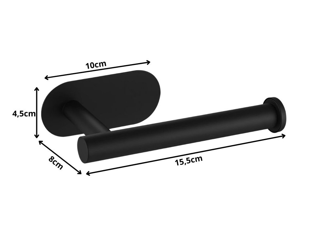 Moderní držák toaletního papíru v černé barvě je ideálním doplňkem pro každou koupelnu. Minimalistický design v loft stylu dodává prostoru elegantní vzhled a umožňuje jednoduchou integraci do různých typů interiérů. Díky instalaci bez vrtání pomocí silné lepicí pásky je montáž rychlá a bez nepořádku.