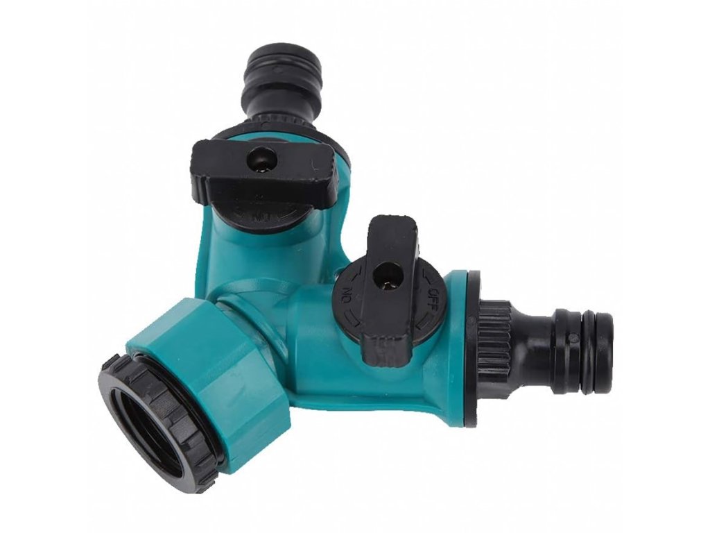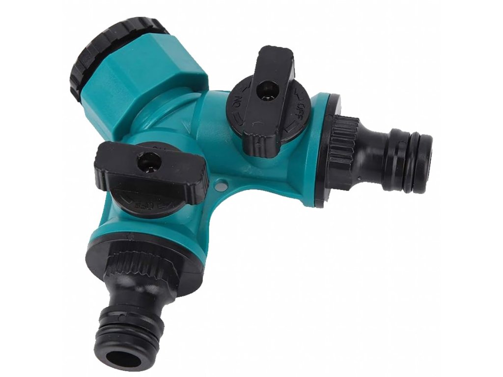 Dvoucestný ventil je praktický rozdělovač zahradní hadice, který umožňuje připojení dvou hadic současně k jednomu vodovodnímu kohoutku. Je vybaven nezávislými regulačními ventily, díky nimž lze samostatně nastavovat průtok vody pro každý výstup. Univerzální provedení se závitem 1/2" a redukcí na 3/4" zajišťuje kompatibilitu s běžnými zahradními kohoutky. Vyroben je z odolného plastu (ABS / PP), který je rezistentní vůči vlhkosti i běžnému mechanickému namáhání. Montáž je rychlá a nevyžaduje žádné nářadí.