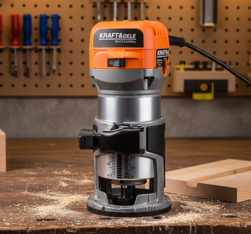Výkonná horní frézka KD3360 je určená pro přesné truhlářské a dokončovací práce. Silný 2000W motor poskytuje dostatek výkonu pro frézování tvrdého i měkkého dřeva, překližky, MDF a dalších materiálů na bázi dřeva. Díky regulaci otáček a přesnému nastavení hloubky je vhodná jak pro hrubší úběr materiálu, tak pro jemné detailní práce.
