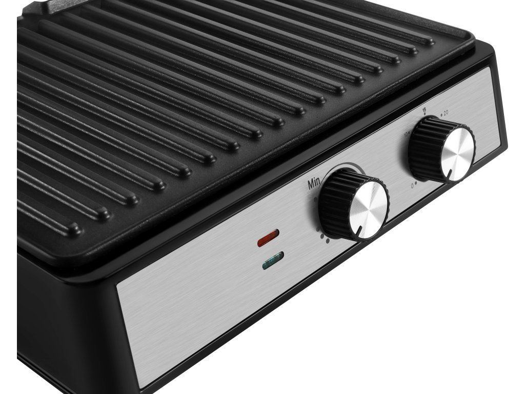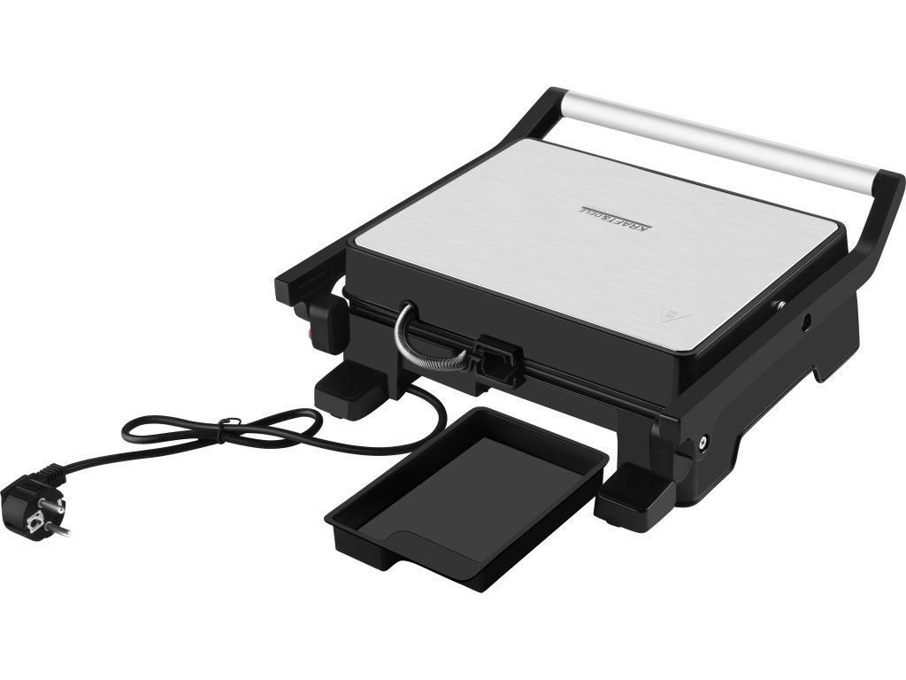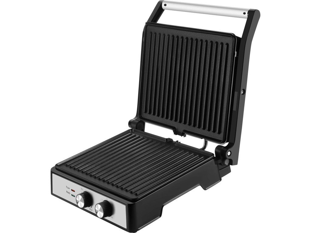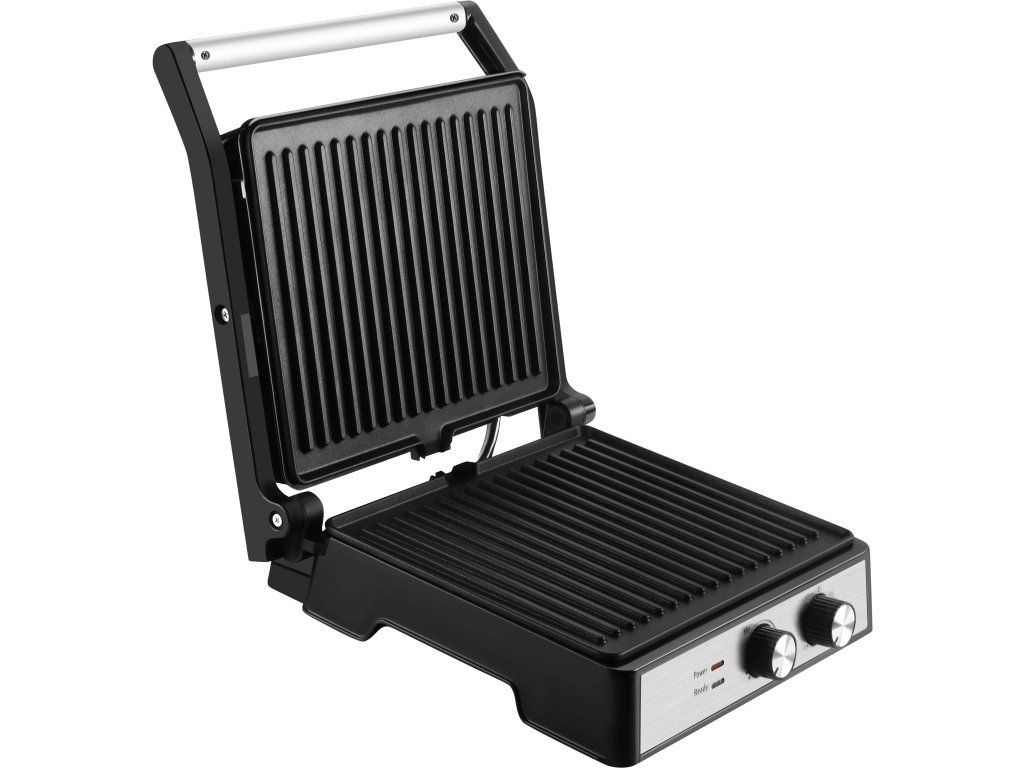 Elektrický gril je výkonný a praktický kuchyňský spotřebič určený pro rychlou přípravu různých pokrmů. Díky výkonu 2400 W nabízí rychlé zahřátí a rovnoměrné grilování. Gril je vybaven termostatem a časovačem pro přesnou kontrolu přípravy jídla. Nepřilnavé desky, možnost otevření o 180° a odkapávací miska zajišťují komfortní používání, snadnou údržbu a zdravější přípravu pokrmů.