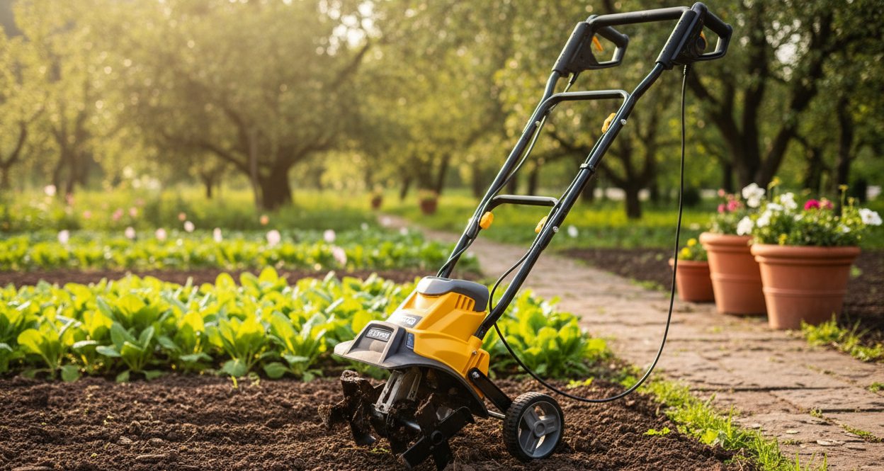 Elektrický kultivátor je výkonný zahradní pomocník určený pro kypření a přípravu půdy před setím nebo výsadbou. Díky silnému elektromotoru o výkonu 1900 W poskytuje dostatečný výkon pro práci i v tvrdší nebo zhutněné půdě, přičemž pracuje výrazně tišeji než benzínové stroje. Lehká, ale pevná konstrukce zajišťuje snadnou manipulaci a dobrou ovladatelnost. Kultivátor je vybaven kalenými pracovními noži, které efektivně rozrušují půdu, a ergonomickými rukojeťmi, které zvyšují komfort při práci. Ochranný kryt pracovních částí navíc zvyšuje bezpečnost při používání.