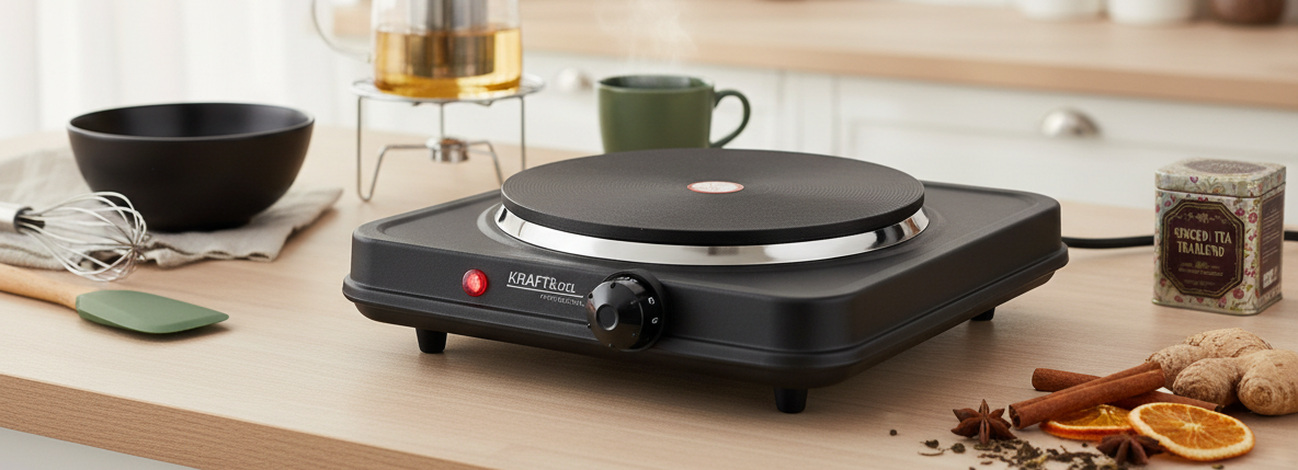 Elektrický vařič je kompaktní a výkonný jednoplotýnkový sporák s maximálním výkonem 2000 W, který je ideální do malých kuchyní, kanceláří, chat nebo jako doplňkový vařič při vaření větších jídel. Díky rychlému ohřevu, plynulé regulaci teploty a snadnému ovládání poskytuje spolehlivý výkon a pohodlí při každodenním používání. Jeho stabilní konstrukce s gumovými nožičkami a kontrolka zapnutí zajišťují bezpečný provoz.