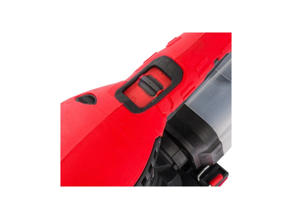 - Pohodlná rukojeť: Bruska má speciální protiskluzovou rukojeť potaženou pryží. Je správně vyvážena ve vztahu k ose excentrické hlavy, což umožňuje dokonalý kolmý přítlak na povrch. Bruska je navržena tak, aby ji mohli používat praváci i leváci.