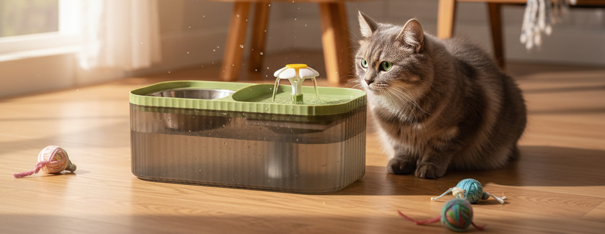 - Pohybující se voda: Zaujme kočku a podporuje ji k větší konzumaci vody.