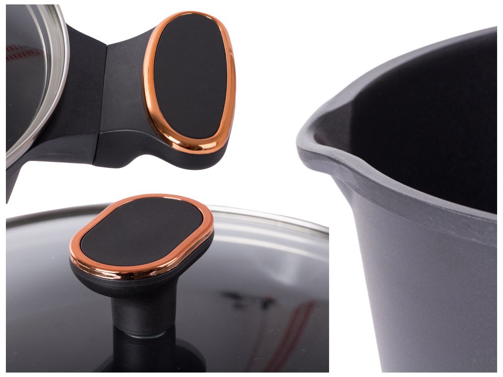 Hluboký hrnec s poklicí je praktický a elegantní pomocník pro každodenní vaření, dušení i smažení. Je vyroben z kvalitního litého hliníku s nepřilnavým povrchem, který zajišťuje rovnoměrný rozvod tepla a zároveň minimalizuje připalování jídla. Díky ergonomickému provedení a univerzálnímu použití se stane nepostradatelnou součástí vaší kuchyně.