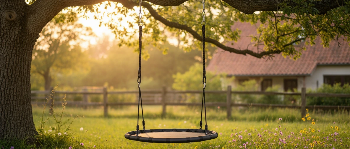 Nosnost až 150 kg – díky silnému železnému rámu a pevným pleteným lanům o tloušťce 10 mm