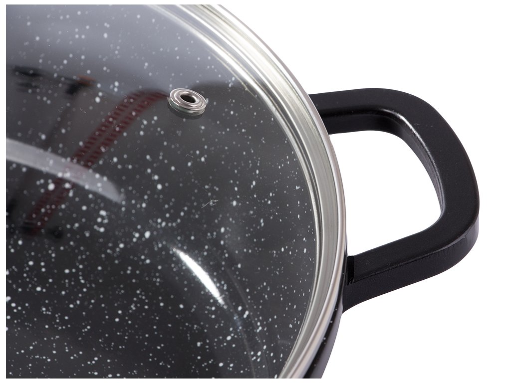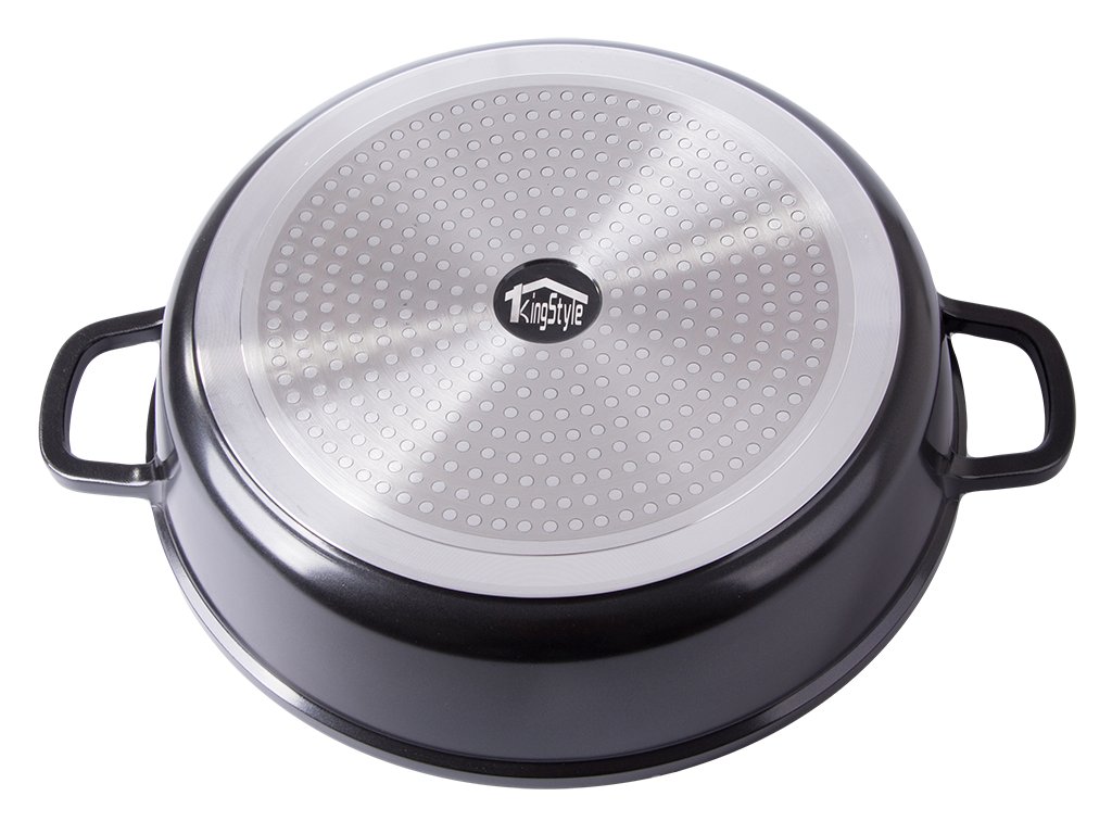 Hrnec s aromatizérem o objemu 5,7 litru je ideální volbou pro každodenní vaření i kulinářské experimenty. Je vyroben z vysoce kvalitního litého hliníku s keramickým nepřilnavým povrchem, který zajišťuje rychlé a rovnoměrné rozložení tepla. Tento hrnec je výjimečný díky aromatizéru zabudovanému v rukojeti víka, který propůjčuje pokrmům jedinečnou chuť a vůni.