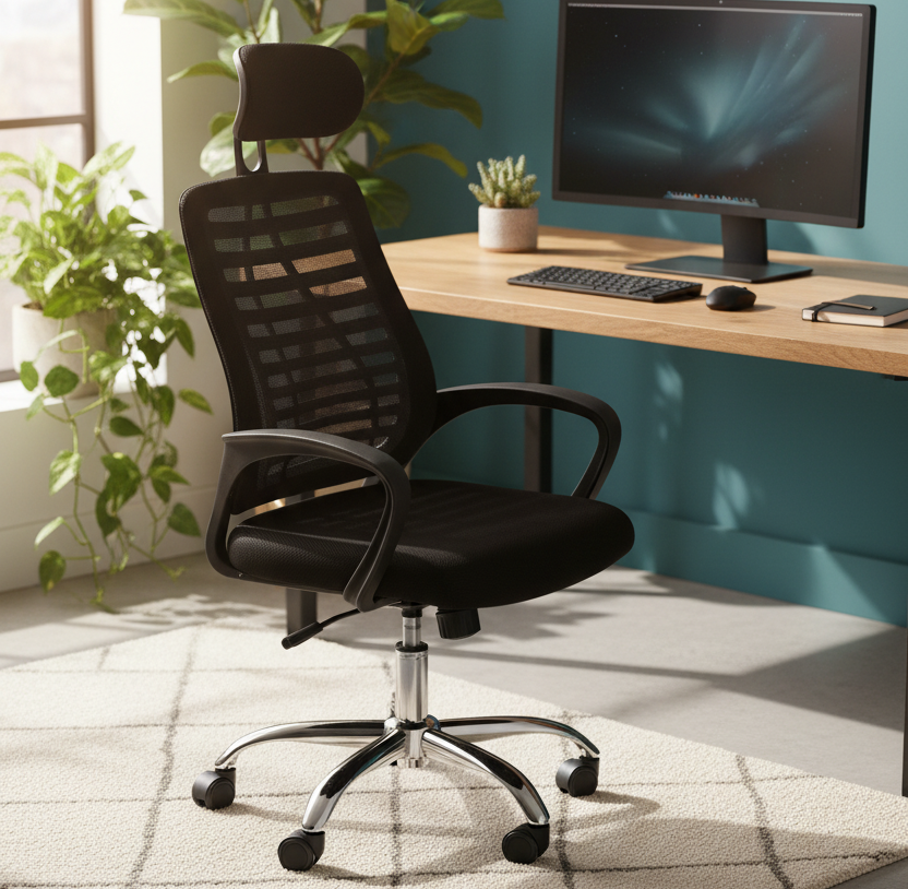 Kancelářská židle je moderní otočná židle navržená pro pohodlnou práci v kanceláři i v domácí pracovně. Díky ergonomickému provedení a výškovému nastavení poskytuje správnou oporu při dlouhodobém sezení u počítače. Sedák i opěradlo jsou vyrobeny z prodyšné mikrosíťoviny, která zajišťuje dobrou ventilaci a komfort i při delší práci. Stabilní konstrukce z kombinace nylonu, oceli a odolného plastu zaručuje dlouhou životnost. Židle je vybavena otočnou základnou s kolečky, což umožňuje snadný pohyb po pracovním prostoru a pohodlnou manipulaci.