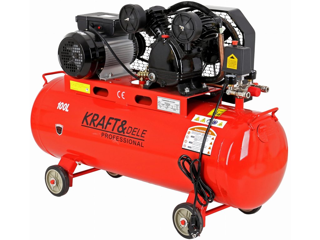 Olejový kompresor s objemem vzdušníku 100 litrů je výkonné a spolehlivé zařízení určené pro domácí i profesionální použití v dílnách, servisech a provozech. Je osazen dvoupístovým olejem chlazeným motorem o výkonu 3,8 HP (2,8 kW), který zajišťuje stabilní tlak a dostatečný průtok vzduchu pro většinu pneumatických nástrojů.