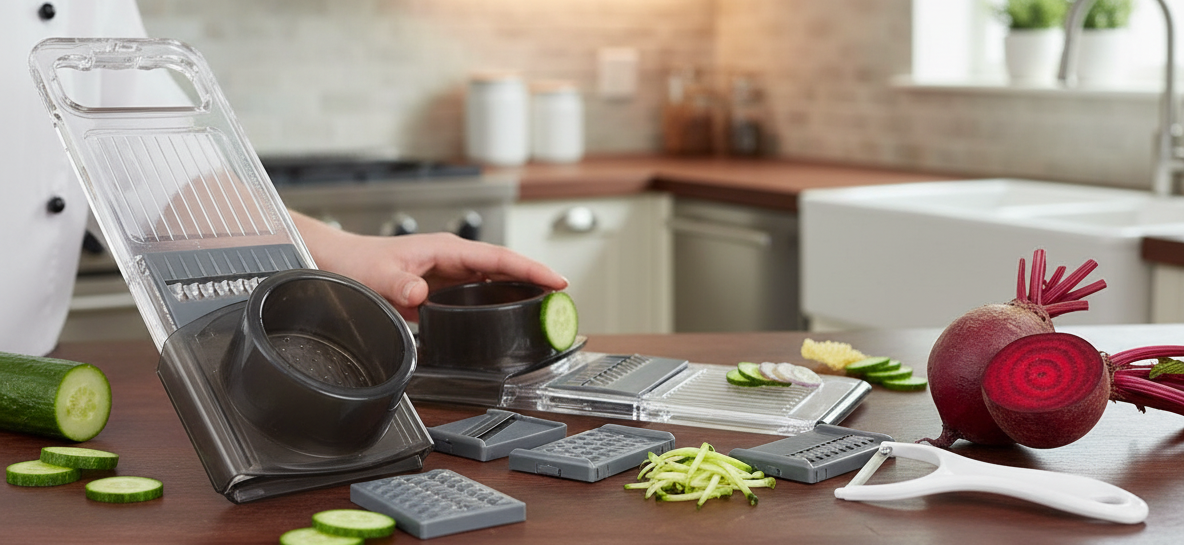 Tento kompaktní a praktický kráječ 6v1 s šikovnou škrabkou se rychle stane vaším každodenním pomocníkem při vaření i přípravě zdravých jídel.