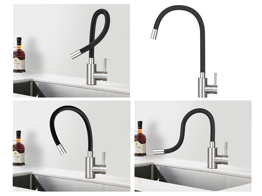 Moderní kuchyňská baterie s flexibilním a otočným výtokem o 360° je ideální volbou pro každodenní použití v každé kuchyni. Umožňuje přesné směrování proudu vody a snadné oplachování nádobí, potravin i plnění větších nádob. Díky kombinaci elegantního designu a kvalitního zpracování z nerezové oceli 304 je nejen praktická, ale také stylová a odolná.