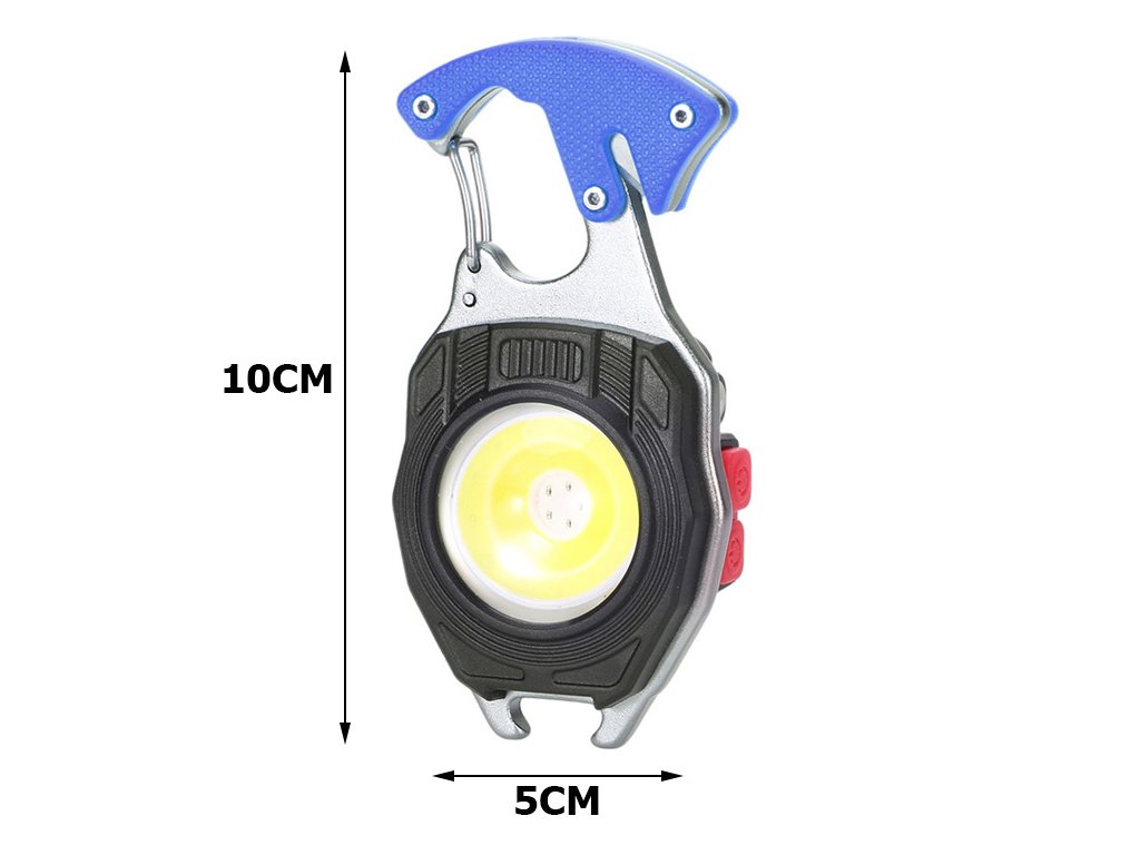 Multifunkční LED světlo je praktický a spolehlivý doplněk pro každodenní použití i outdoorové aktivity. Kombinuje v sobě svítilnu, karabinu, zapalovač, otvírák, šroubovák, magnet a píšťalku, což z něj činí univerzální nástroj pro cestování, kempování, turistiku nebo nouzové situace.