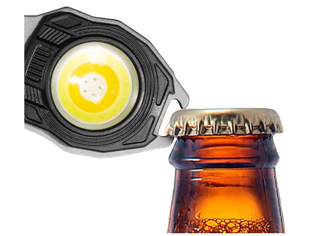 Díky kompaktním rozměrům a vestavěné karabině jej lze snadno připevnit ke klíčům, batohu nebo opasku, takže ho máte vždy po ruce. Je vybaven výkonnou LED lampou typu COB, která nabízí bílé, teplé i červené světlo a několik režimů svícení – od plného jasu až po výstražné blikání.