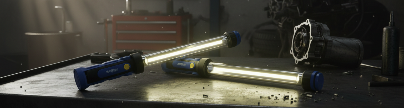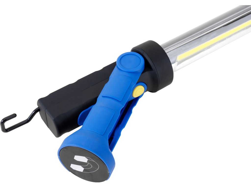 Svítilna je osazena dvěma 10W COB LED moduly, nabízí široký a rovnoměrný světelný paprsek a maximální světelný tok až 1200 lumenů. Pogumované pouzdro z ABS plastu zajišťuje odolnost proti nárazům, zatímco silný magnet a závěsný háček umožňují pohodlné upevnění v pracovním prostoru.