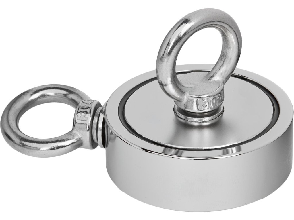 Neodymový magnet KRAFT&DELE KD10418 je profesionální oboustranný magnet pro magnet fishing s maximální nosností až 180 kg. Je vyroben ze slitiny neodym–železo–bor (NdFeB), která patří mezi nejsilnější magnetické materiály. Díky robustnímu ochrannému pouzdru je magnetická síla soustředěna na pracovní plochu, což výrazně zvyšuje účinnost při vytahování kovových předmětů z vody či terénu. Magnet má dvě rukojeti (horní a boční) pro práci v různých rovinách a v balení je pevné 20m lano s karabinou pro bezpečnou manipulaci a rychlé uvolnění při náročných nálezech.