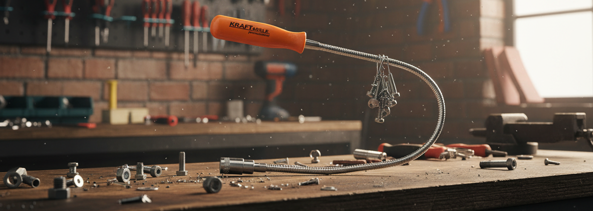 Magnetický držák ohebný s LED osvětlením KD10190 KRAFT&DELE je praktický nástroj, který kombinuje magnetický držák s ohebnou konstrukcí a integrovaným LED osvětlením. Jednoduchý a účinný nástroj s LED osvětlením, který je nezbytný v každé dílně nebo v garáži. Vhodný k získávání kovových předmětů (šroubky, matice, kolíky apod.) z obtížně přístupných míst.
