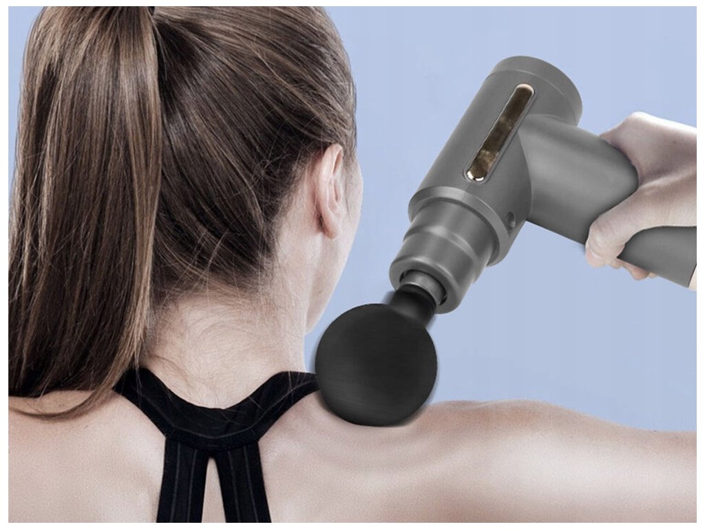 Masážní pistole je navržena pro zmírnění svalového ztuhlosti, bolesti a zlepšení krevního oběhu. Je ideální pro sportovce i běžného uživatele po fyzické aktivitě, pomáhá regenerovat záněty a uvolnit měkké tkáně.