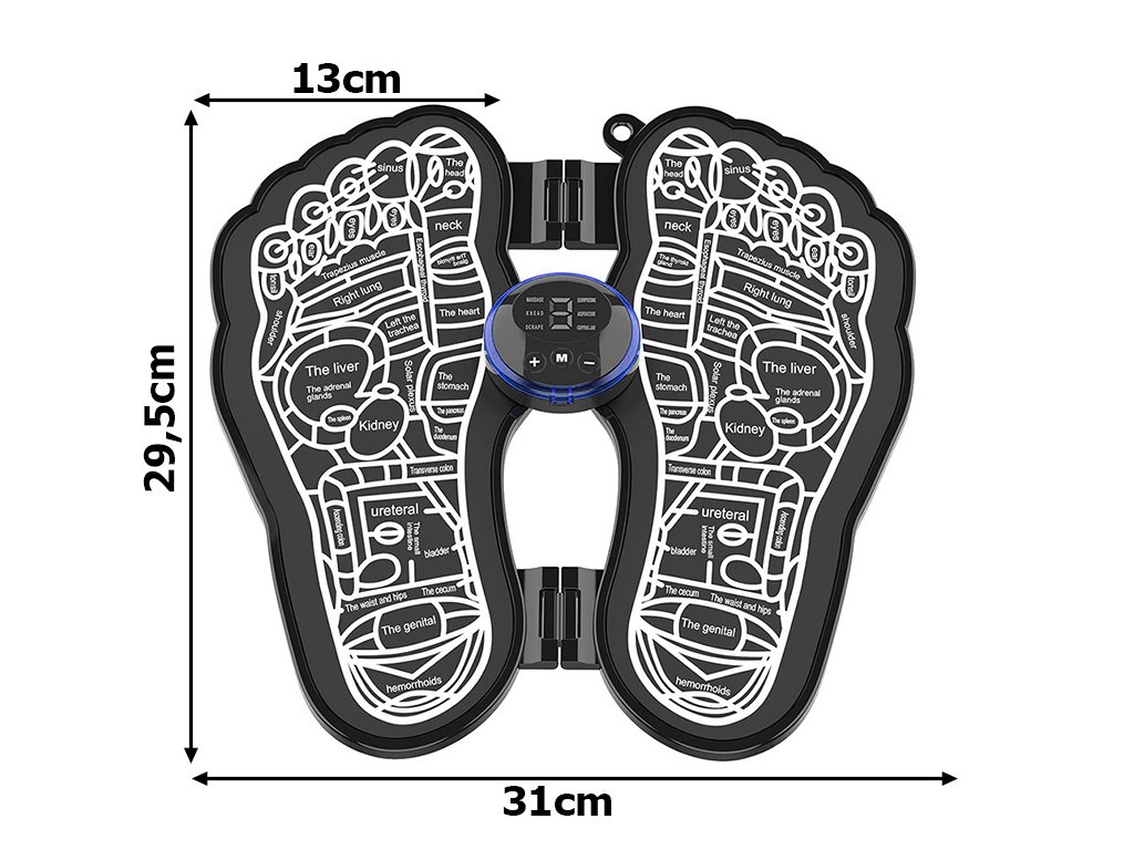 Masážní podložka na nohy využívá principu EMS elektrostimulace k cílené stimulaci chodidel a svalů dolních končetin. Přesně rozmístěné stimulační body napodobují techniku ruční masáže a přispívají k uvolnění, regeneraci a celkovému pocitu pohody. Podložka nabízí více masážních programů a úrovní intenzity, díky nimž lze masáž snadno přizpůsobit individuálním preferencím po náročném dni, při relaxaci i lehkém domácím tréninku.