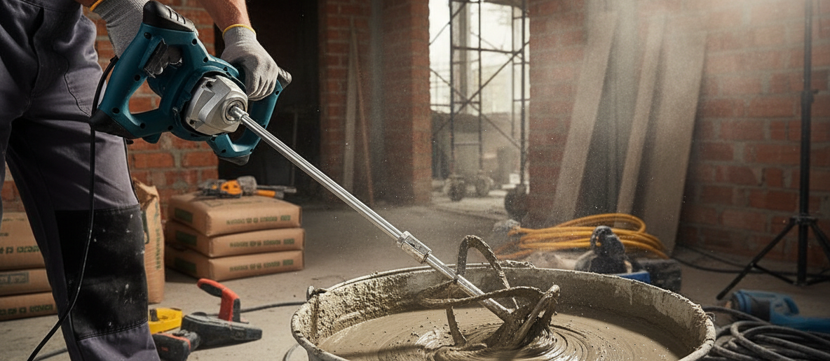 Vhodné pro profesionální použití na stavbách i domácí renovace. Míchačka zvládne: