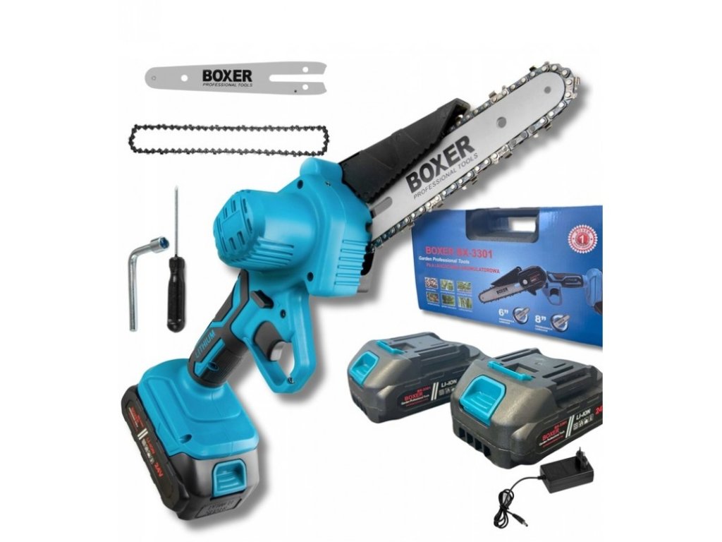 Mini řetězová pila BOXER BX3301 je ideální volbou pro uživatele, kteří hledají lehký, výkonný a praktický aku nástroj s bohatým příslušenstvím a dlouhou výdrží.