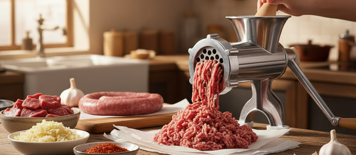 Manuální mlýnek na maso je skvělou volbou pro všechny, kteří si chtějí maso zpracovávat po svém – bez přidaných látek a s chutí tradičních domácích pokrmů. Díky přiloženému nástavci na klobásy si snadno připravíte i vlastní uzeniny.