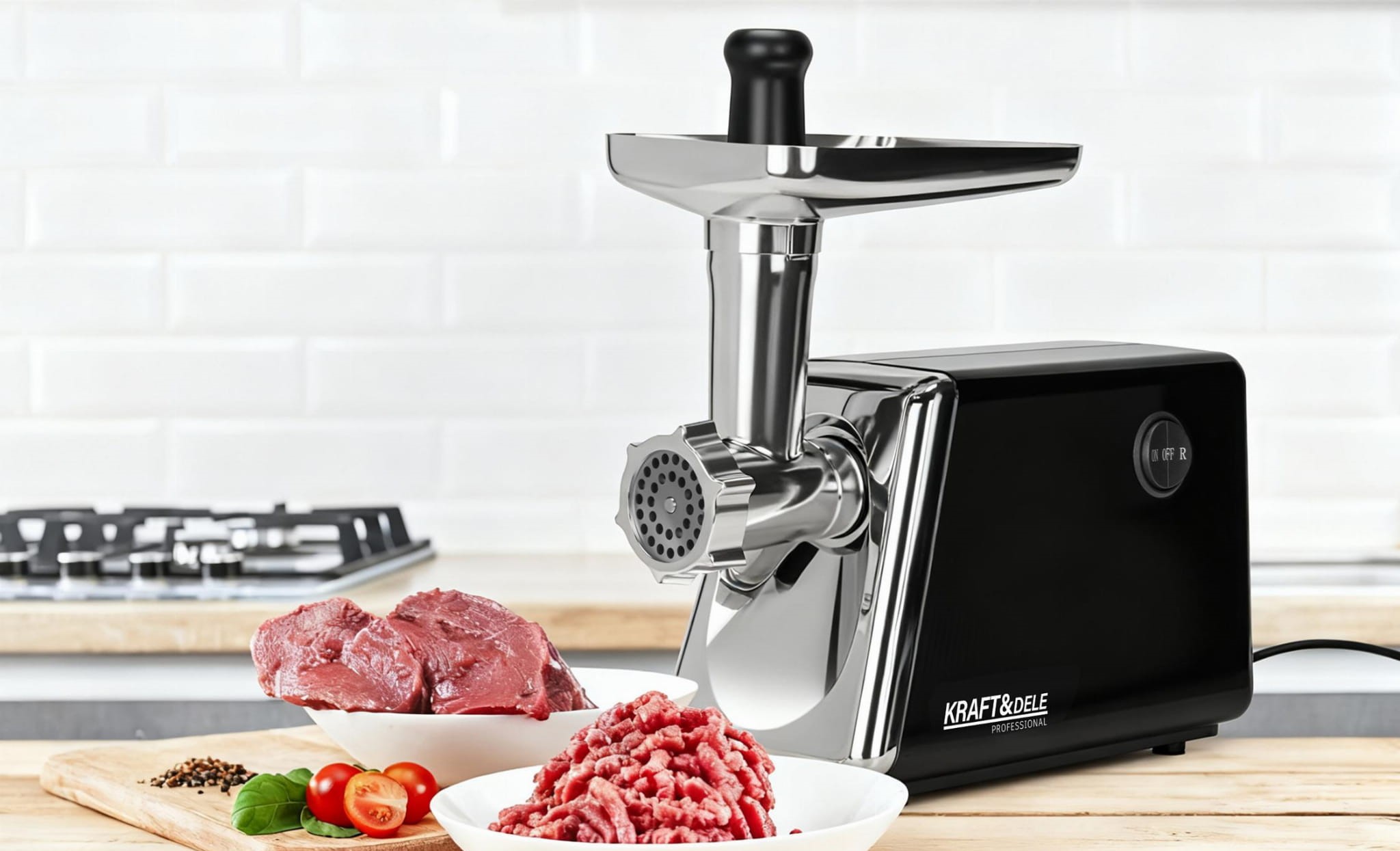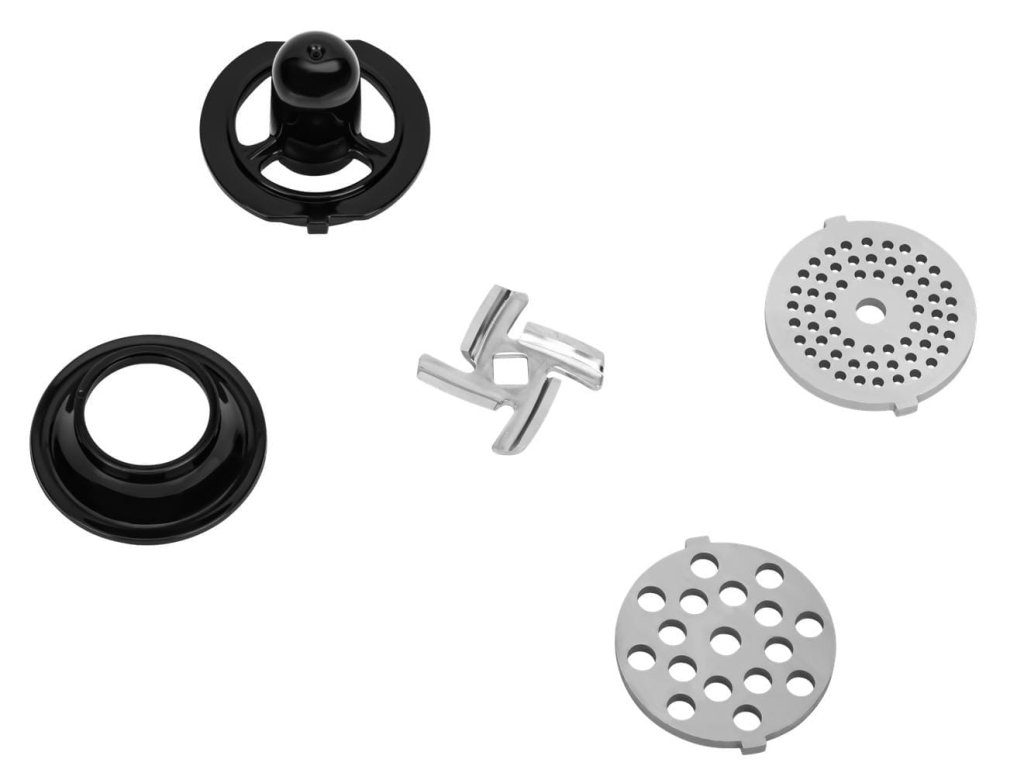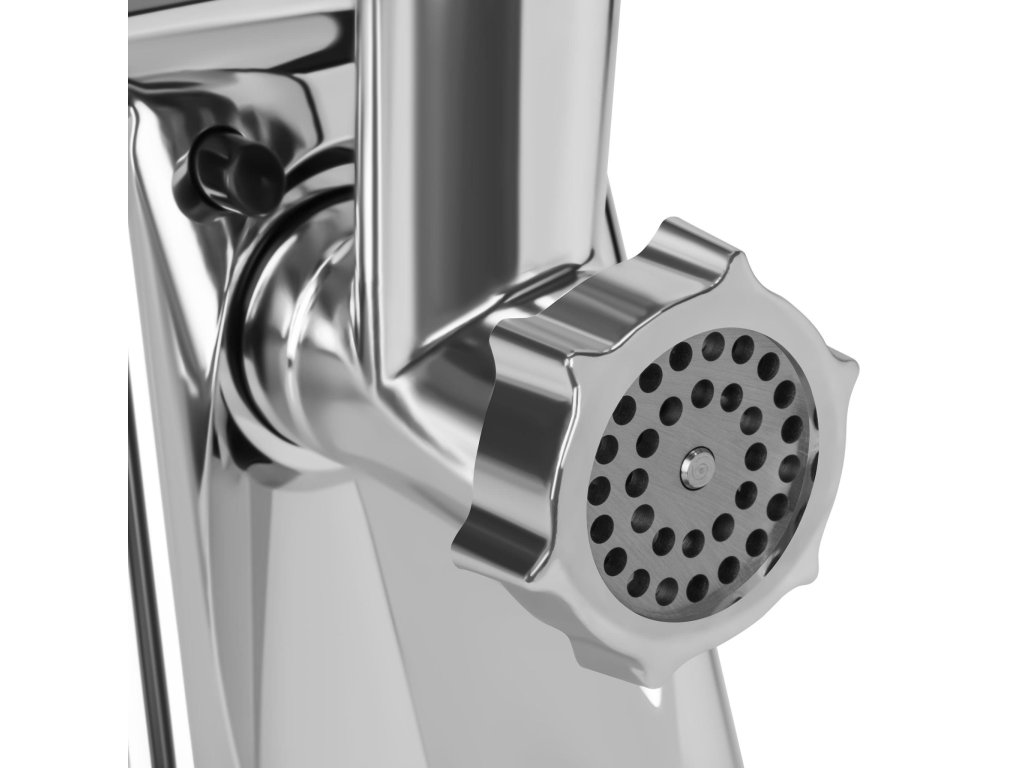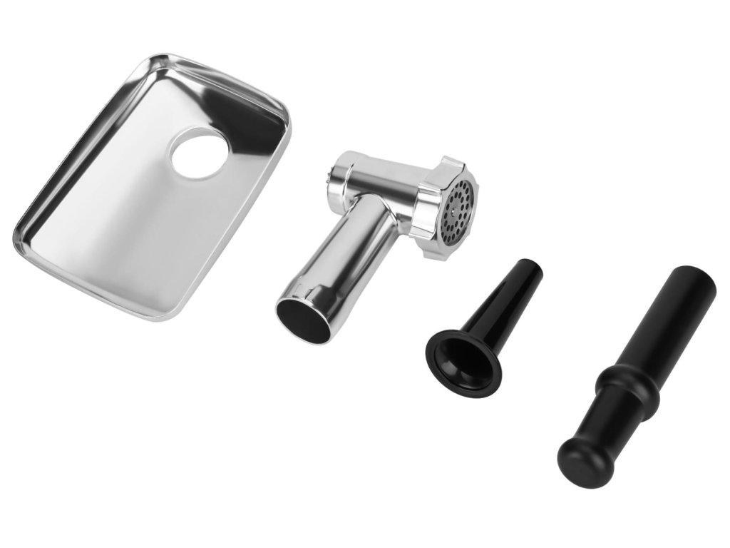 Mlýnek na maso je multifunkční kuchyňský pomocník s bohatým příslušenstvím, který kombinuje vysoký výkon, robustní konstrukci a široké možnosti využití. Díky motoru nové generace s jmenovitým výkonem 2000 W dokáže zpracovat až 3 kg masa za minutu. Kovová hlava a kovový podávací zásobník zajišťují dlouhou životnost a stabilitu při provozu, zatímco dva provozní režimy a funkce zpětného chodu umožňují pohodlné ovládání a řešení případného ucpání surovin. Součástí je také praktický drtič se třemi nerezovými bubny pro krájení a strouhání zeleniny, stejně jako příslušenství pro přípravu domácích klobás a kebbe.