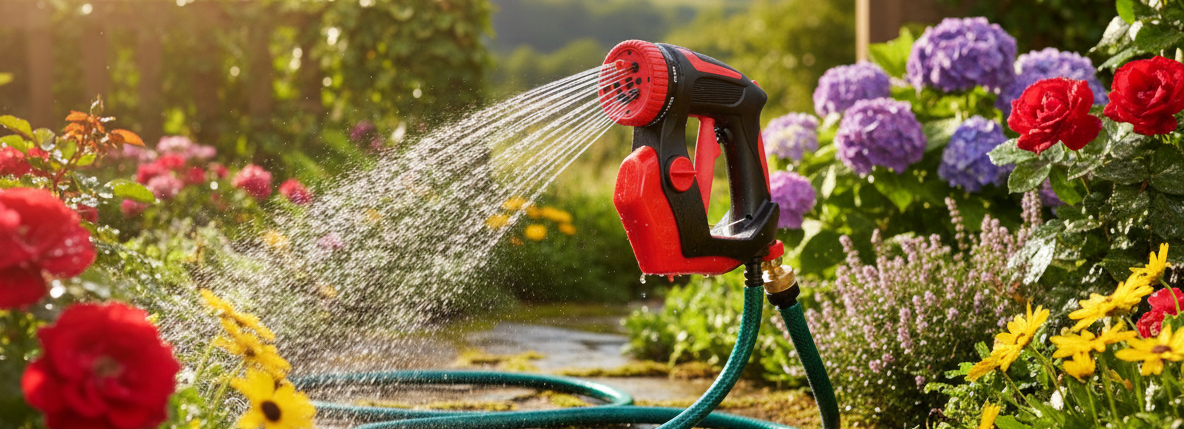 - Regulace kapaliny: Otočný knoflík na zadní straně pistole umožňuje jednoduché nastavení množství kapaliny přidané do vody.