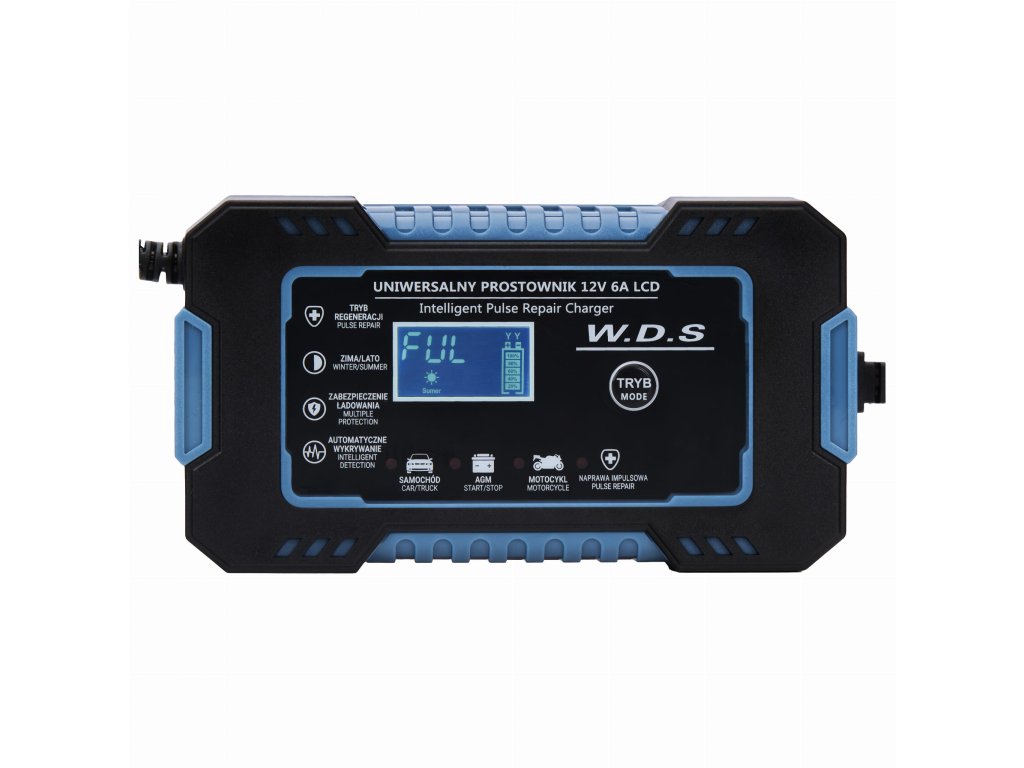 Automatická nabíječka autobaterií WDS2230 je spolehlivé a moderní zařízení určené pro nabíjení 12V baterií v osobních automobilech, motocyklech i vozidlech se systémem Start-Stop. Díky plně automatickému řízení nabíjení, LCD displeji a inteligentní regulaci podle okolní teploty zajišťuje bezpečné, efektivní a šetrné dobíjení akumulátorů. Robustní konstrukce z kvalitních materiálů garantuje dlhou životnost a bezproblémový provoz v domácí i dílenské praxi.