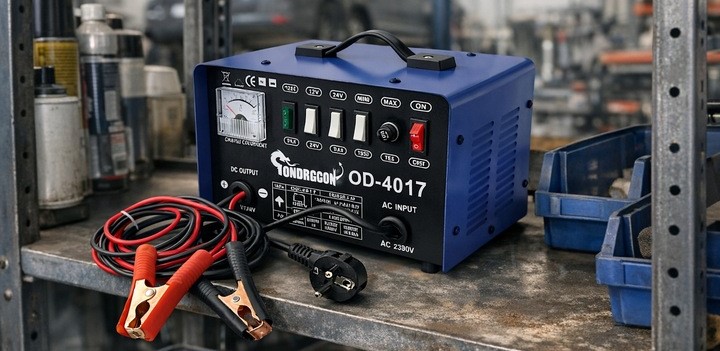 Automatická nabíječka autobaterií ONDRAGON OD4017 je výkonné profesionální zařízení určené pro nabíjení a startování 12V a 24V olověných baterií. Díky nabíjecímu proudu až 90 A a podpoře baterií s kapacitou 30–300 Ah je vhodná pro autoservisy, dílny i náročné domácí použití.