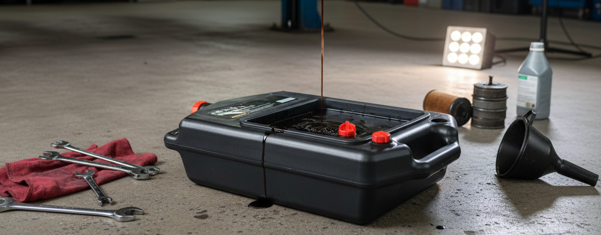 Praktická nádoba na olej o objemu 8 litrů je nepostradatelným pomocníkem v každé autoservisní dílně i domácí garáži. Slouží pro bezpečné a pohodlné vypouštění motorového oleje, chladicí kapaliny nebo dalších provozních kapalin při údržbě vozidel.