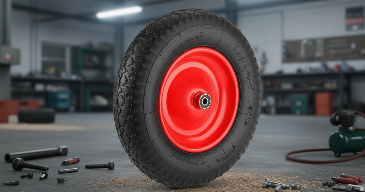 Výměna opotřebovaného kola stavebního kolečka
