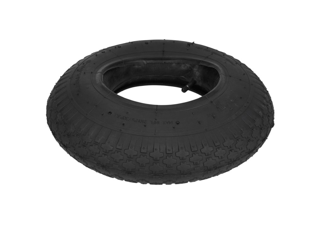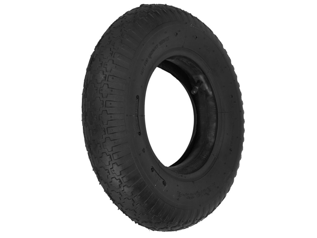 Náhradní sada pneumatiky a duše KRAFT&DELE KD461 je univerzální řešení pro trakaře, zahradní a pracovní vozíky, motokáry a další zařízení s 8" ráfkem. Pneumatika je vyrobena z vysoce kvalitní gumy se speciální směsí, která zajišťuje vysokou odolnost proti povětrnostním vlivům, praskání a mechanickému poškození. Díky klasickému vzduchovému provedení poskytuje dobré tlumení nerovností a komfort při jízdě i s nákladem.