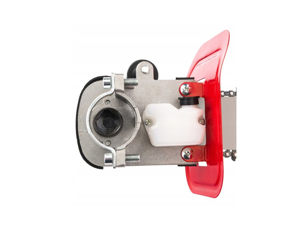 - Nástavec: Má zabudovaný systém mazání řetězu. Jednoduše naplňte nádrž doporučeným mazivem. Bez toho nebude zaručena správná funkce.