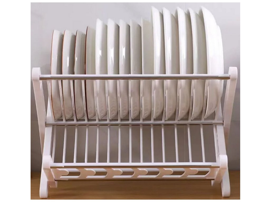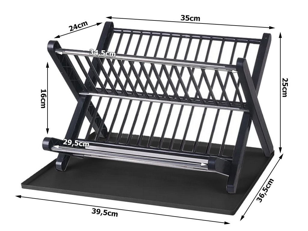 Moderní dvoupatrový odkapávač na nádobí je ideálním pomocníkem do každé kuchyně. Díky pevné konstrukci z kvalitního plastu je odolný vůči vlhkosti a mechanickému poškození. Nabízí dostatek prostoru pro uložení velkého množství nádobí – nahoru se vejde až 16 talířů, spodní patro poslouží pro misky, šálky nebo sklenice. Díky praktické odkapávací misce zůstává kuchyňská linka suchá a čistá.