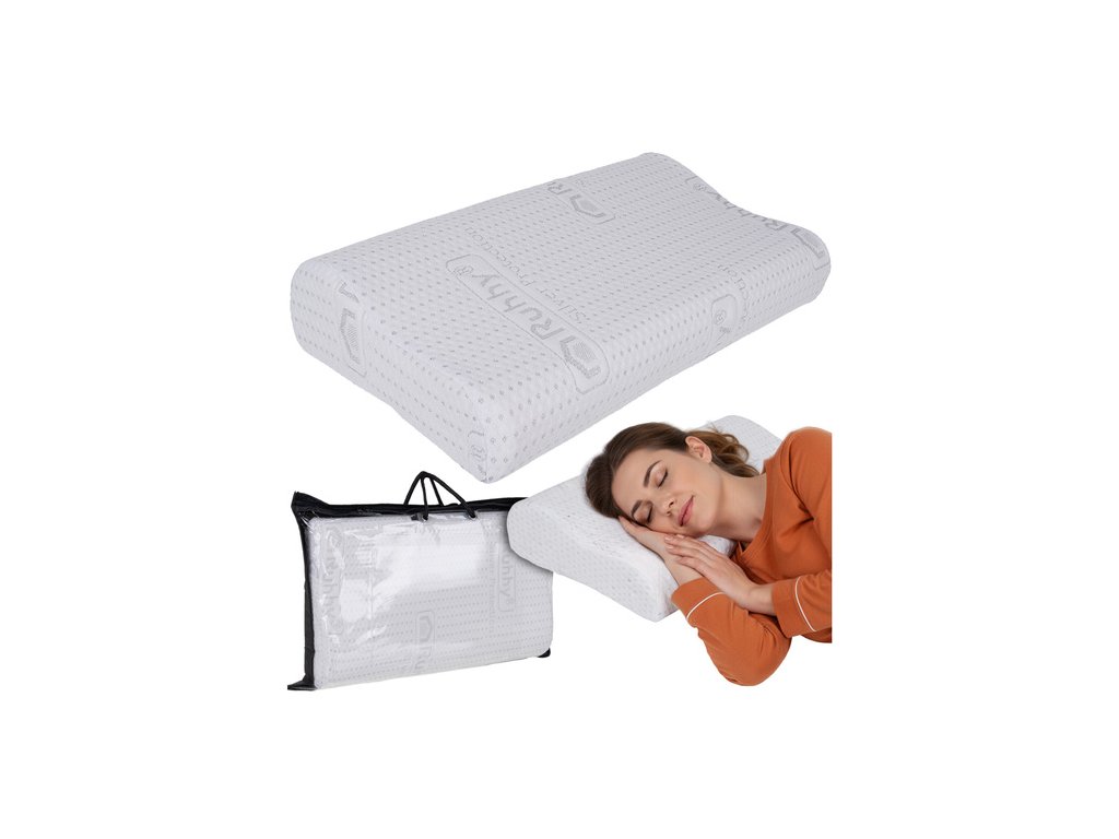 Ortopedický polštář je navržen pro zdravý, klidný a regenerační spánek při spaní na boku i na zádech. Díky ergonomicky tvarované paměťové pěně poskytuje optimální oporu krční páteři, hlavě i šíji a pomáhá předcházet ranní ztuhlosti, bolestem krku a necitlivosti rukou. Polštář se přizpůsobuje tvaru těla podle teploty a tlaku, čímž udržuje páteř ve správné poloze po celou noc. Součástí je antibakteriální potah s ionty stříbra, který zvyšuje hygienu a komfort používání.