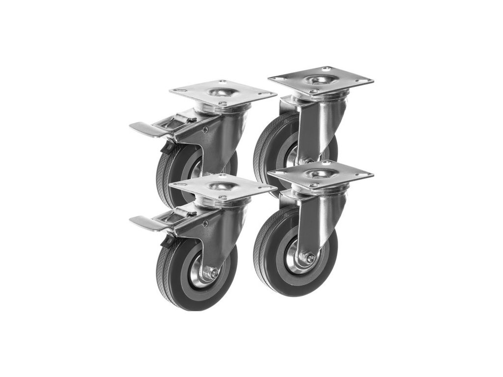 Sada 4 ks otočných kol (2× s brzdou, 2× bez brzdy)
